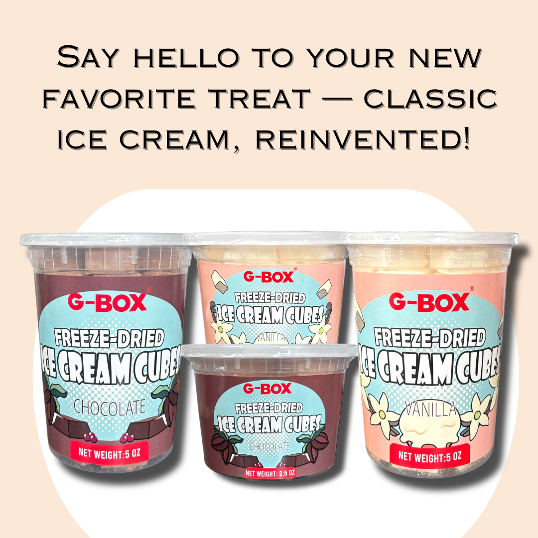 Introducing G-BOX Freeze-Dried Ice Cream Cubes – a revolutionary twist on the classic frozen treat that takes your taste buds on an out-of-this-world adventure. Immerse yourself in the perfect blend of nostalgia and innovation with our premium freeze-dried ice cream cube, meticulously crafted under the G-BOX brand.