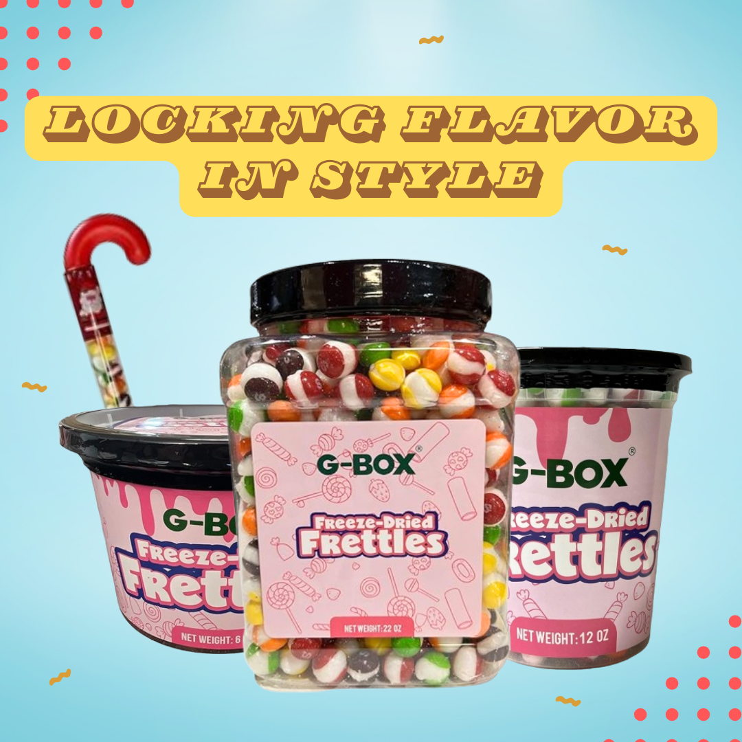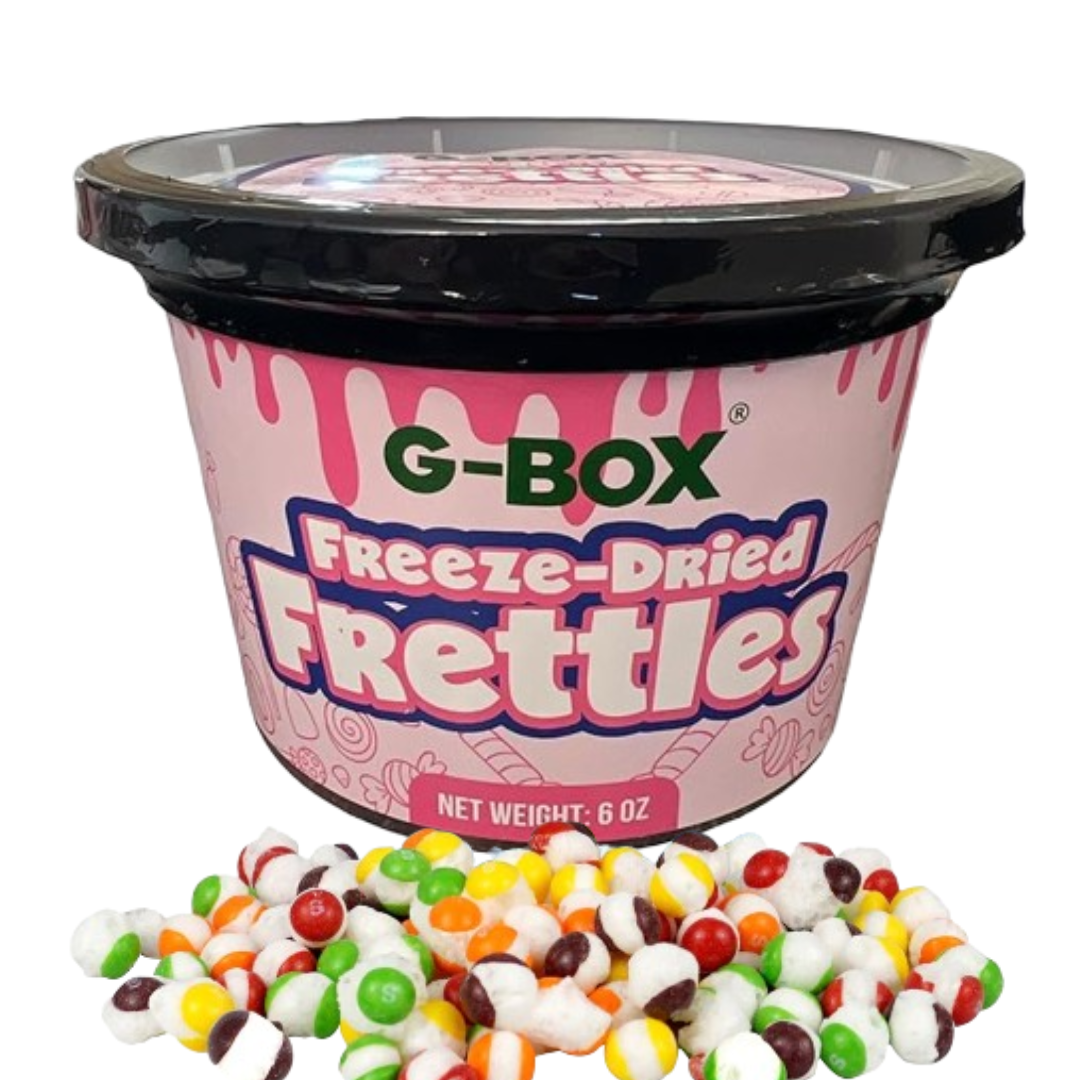 Introducing our newest innovation in snacking: Freeze-Dried Frettles! Bursting with fruity flavors and a satisfying crunch, these colorful candies are a must-try for any candy lover. Our unique freeze-drying process preserves the vibrant colors and tangy tastes of Frettles, while removing all the moisture for a crispy texture. This means you can enjoy the same great taste of Frettles in a new and exciting way. Perfect for on-the-go snacking, road trips, hiking, or just a fun treat to share with friends and family. Plus, Freeze-Dried Frettles are a gluten-free indulgence that you can feel good about. Get your hands on a container today and experience the crunch and flavor explosion of Freeze-Dried Frettles!